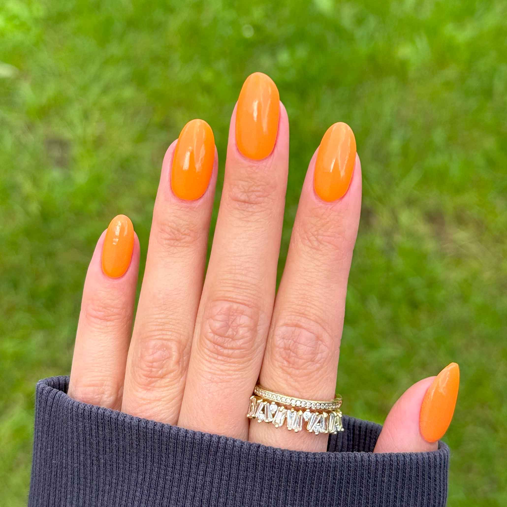 Whether you're looking for a fun and quirky look for a night out or want to add some Autumnal flair to your everyday look, Pumpkin Spice is the perfect go-to. This pumpkin orangey nail colour is ideal for giving your nails some extra spice, perfect for creating vibrant nail designs. Ideal for Halloween nails, Pumpkin Spice adds a touch of seasonal charm to your manicure.